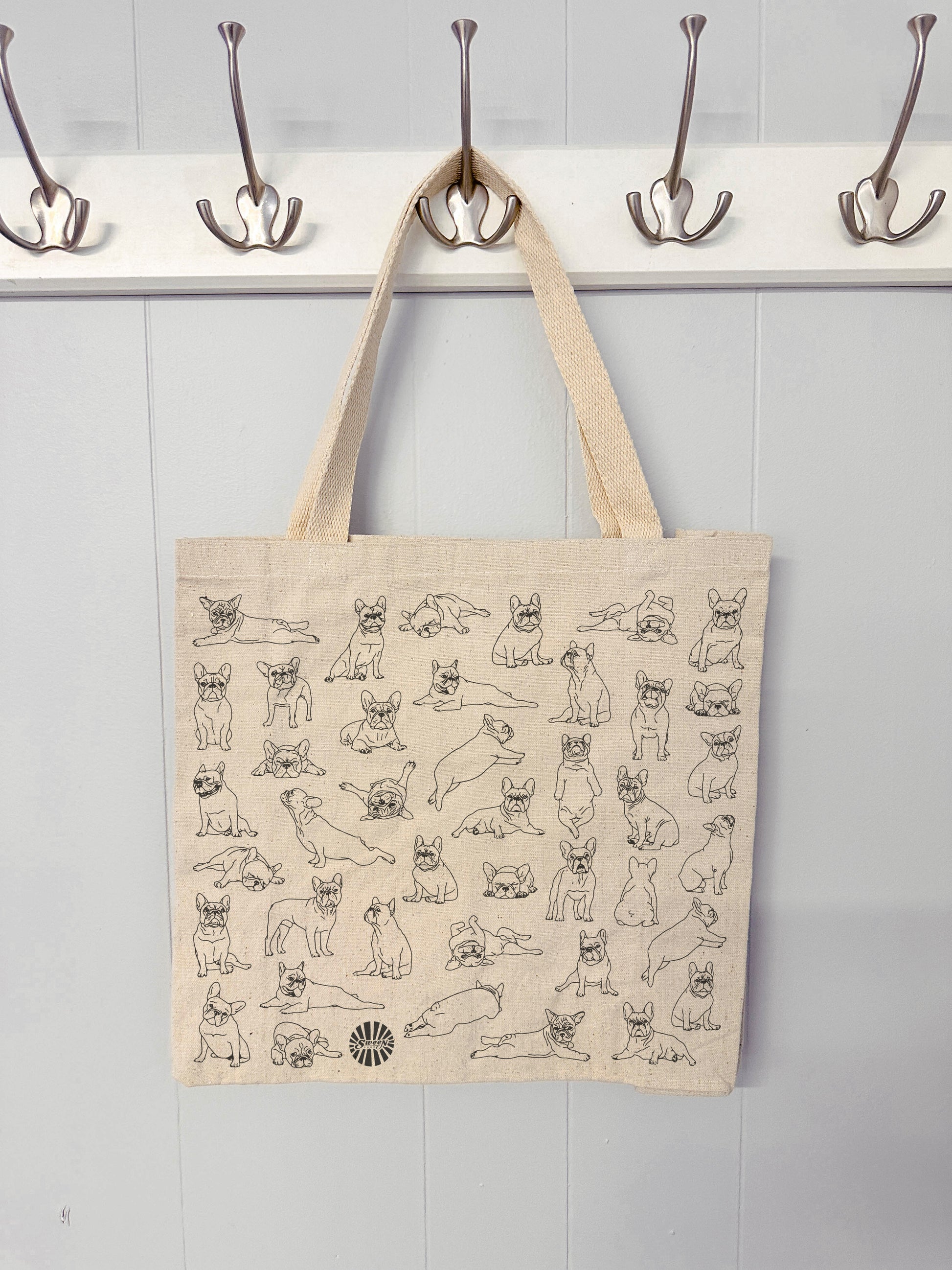 French Bulldog Frenchie tote bag features a collection of silly, sassy, and downright adorable hand drawn French Bulldog Frenchie illustrations. This spacious reusable bag is perfect for carrying books, shopping & grocery trips, the gym, office, weekend getaways, or for everyday use. The design is printed on one side of the bag using Direct-to-garment quality print where the ink is printed into the fabric, not sitting on top like vinyl. Featuring 26” long handles so you can comfortably wear the bag over your shoulder. Stress points are reinforced for durability. Makes a perfect gift for a French Bulldog Frenchie Mom or dad, for Valentines, birthday, Mother’s Day or Christmas. And, of course, there is no shame in buying a cute gift for yourself!