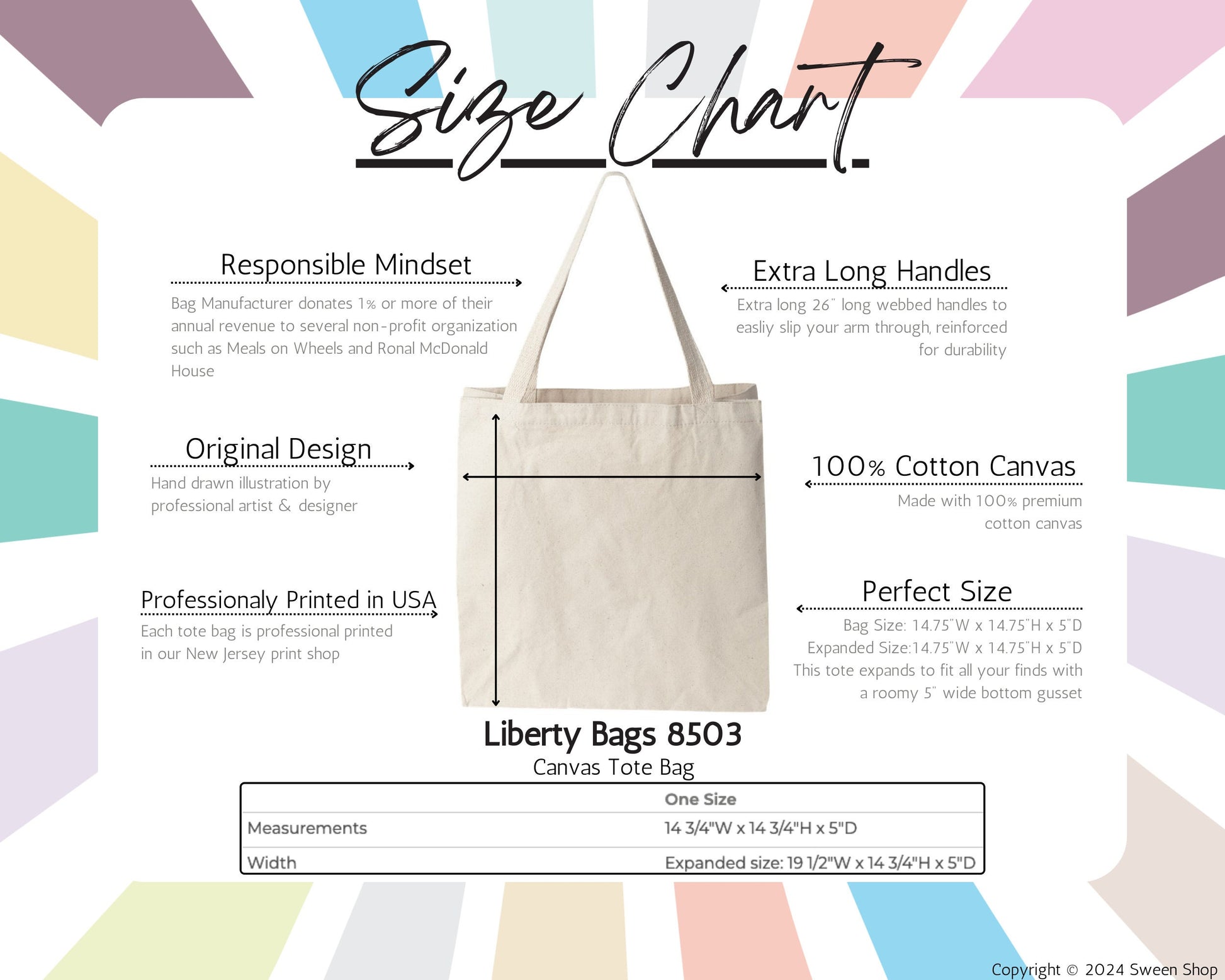 • The tote bag is made from premium 12 oz. 100% cotton canvas and can be washed