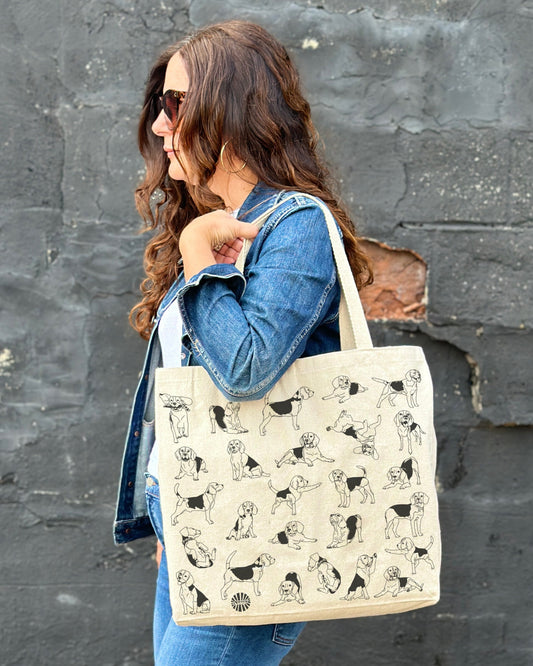 Beagle Tote Bag - 100% Cotton Canvas Reusable Shopping Bag