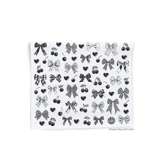 Bows Hearts Cherries Tea Towel - 100% Premium Cotton Kitchen Dish Cloth